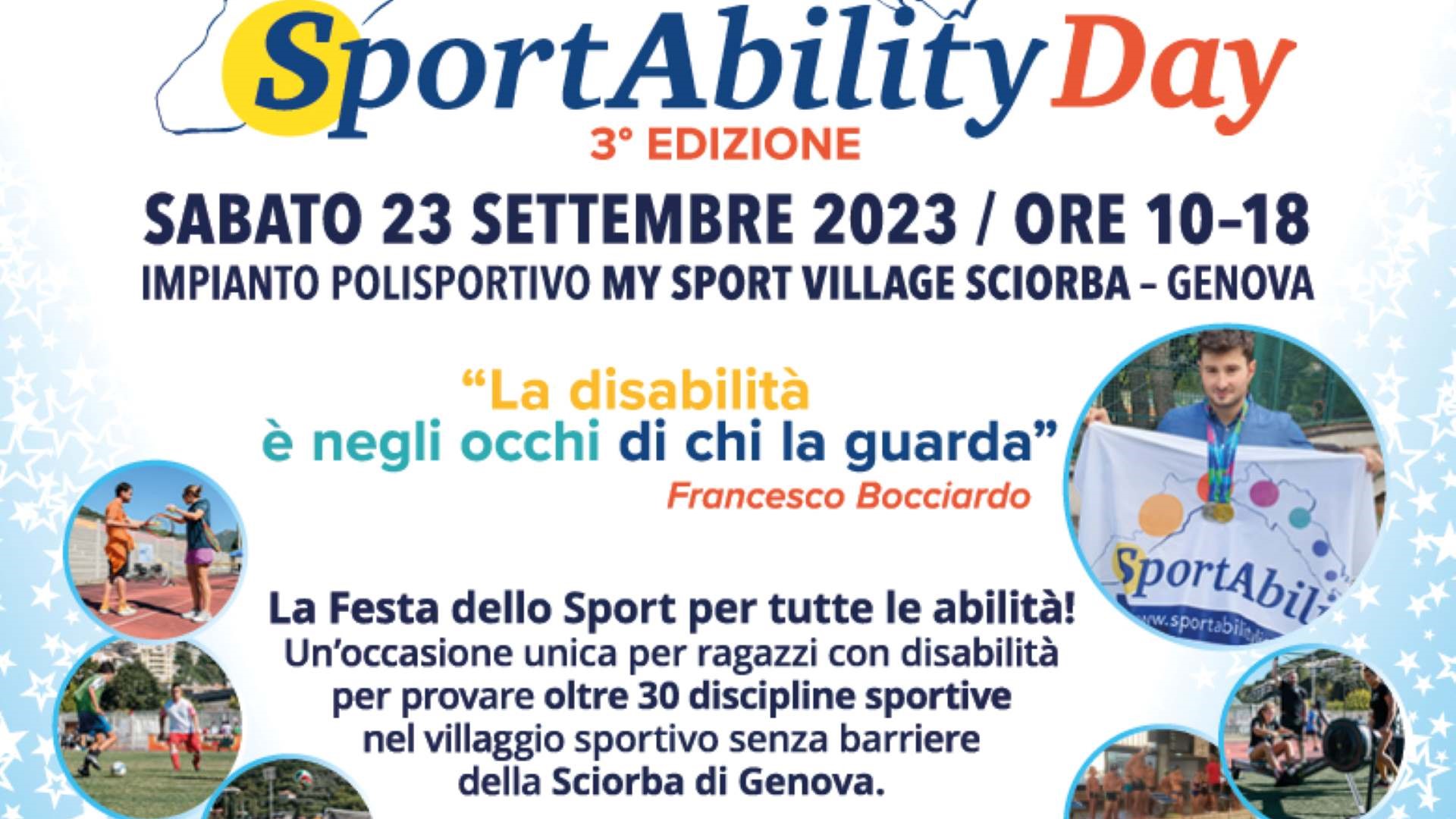 NewsSabato 23 settembre si terrà a Genova la terza edizione dello “SportAbility Day” nel magnifico impianto polisportivo My Sport Village Sciorba.