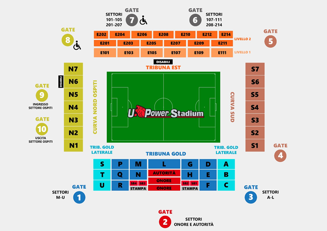 Si potrà accedere allo stadio solo ed esclusivamente dal Gate indicato sul biglietto; l’accesso da un Gate diverso non verrà in alcun modo consentito;