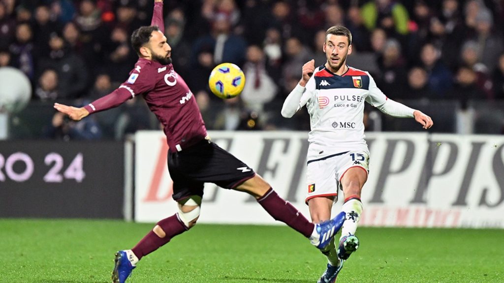 Il ritorno al gol di Retegui – Il successo del gruppo regala una classifica che è un piacere guardarla. Un’occasione vera e un gol per parte. I primi 45’, più uno di recupero, certificano l’equilibrio di una partita piacevole e combattuta in ogni zona del campo. La nostra è una partenza ad handicap. Giusto per non farci mancare una spruzzata in più di difficoltà, non bastassero le assenze per gli otto rimasti a Genova. Andiamo sotto al primo affondo dei granata che trovano il varco sul lato mancino e Martegani per la girata di prima sotto la traversa. Il piano si inclina. Lo rimettiamo in bolla con la rete che porta il pareggio in una decina di minuti. L’azione si sviluppa sull’asse centrale e coinvolge Gudmundsson, Retegui e Badelj. Il filtrante del 47 è un cioccolatino che Retegui di potenza scarta per la gioia dei 450 presenti all’Arechi e di chi è incollato alla tv. Gli avversari adottano il pressing in maniera sistematica per recuperare il pallone in zone strategiche. Ribattiamo giocandola di prima per allentare la morsa e ripartire negli spazi con lucidità e intraprendenza. Spence al debutto macina chilometri e offre un porto sicuro in appoggio. Martinez pulisce l’area con tempismo davanti a Simic. Retegui ci riprova su un cross pennellato di Badelj. Sul colpo di testa di Maggiore, intercettato da Martinez a ridosso del palo, si chiude la prima frazione con due cartellini pesanti e la prossima squalifica di Frendrup e Badelj che salteranno il Lecce.