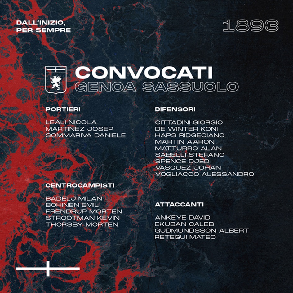 NewsQuesti gli elementi a disposizione per la gara con il Sassuolo. Rispetto alla partita precedente rientra tra i convocati il capo-cannoniere Gudmundsson. Fischio d’inizio domenica alle 15.