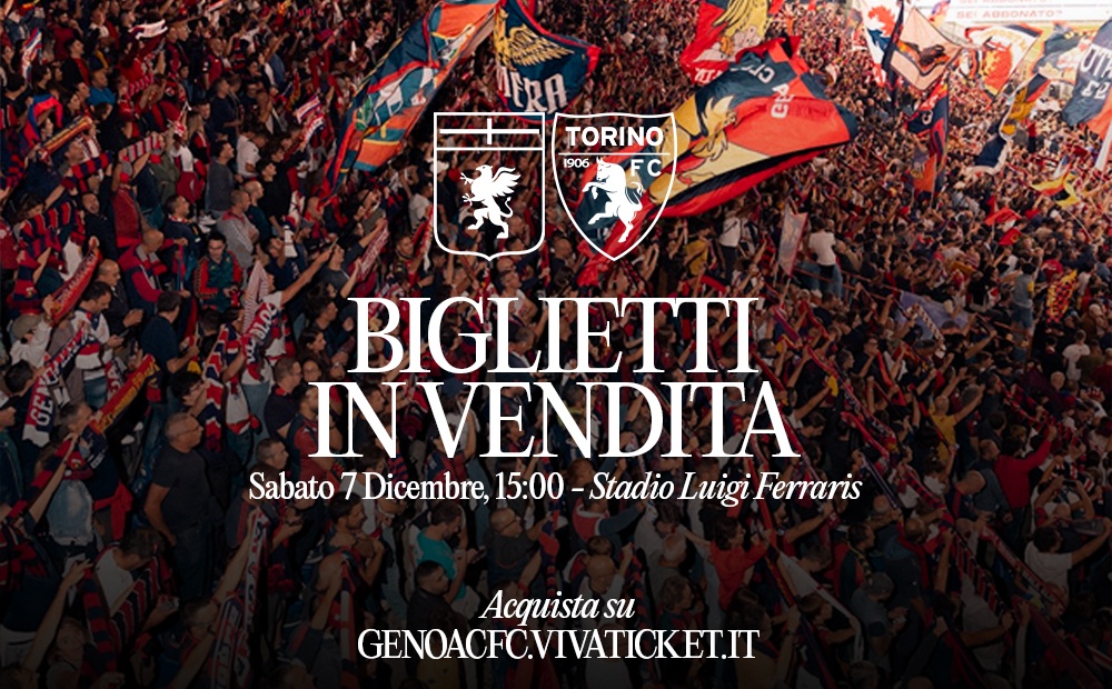 Genoa-Torino: sabato 07/12, ore 15 (biglietto gratuito Under 14 per Gradinata Zena e Laterale richiedibile solo al Ticket Office al Porto Antico in base alle procedure in vigore).