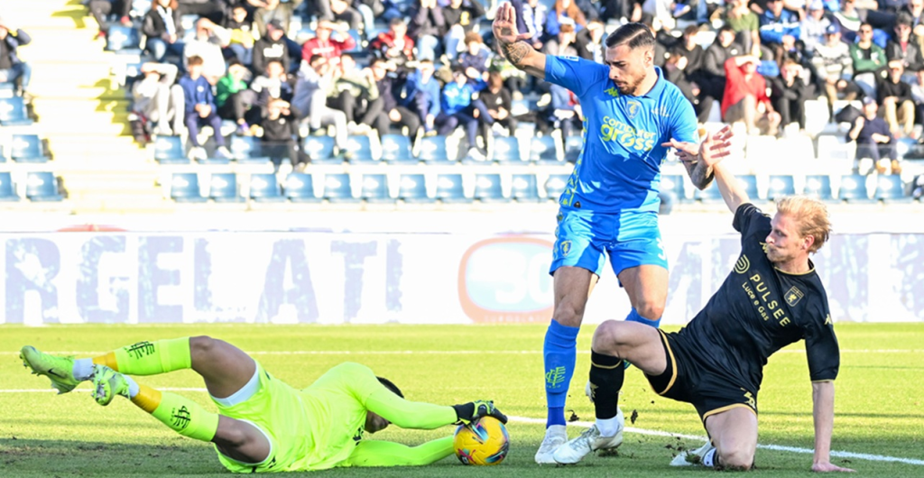 BADELJ ED EKUBAN SCAGLIANO L’UNO DUE E LEALI VOLA – Fuga per la vittoria. E’ il gol di Badelj a inclinare il match, dopo un pallone lavorato da Vitinha, tra i migliori per intensità e qualità di giocate, e dal bomber Pinamonti sfruttando un recupero alto proprio del compagno di reparto. La reazione toscana è respinta dai riflessi di Leali. Ci sono i suoi guantoni ad accomodare sul palo il penalty di Esposito. E’ il quarto parato in A su quindici (27%). In mezzo al forcing dei locali che hanno gamba e fraseggio, Ekuban due volte, Miretti una, sfiorano il raddoppio. E sono loro a confezionarlo, gol e assist, prima della rete della bandiera di Esposito. Com’è dolce il viaggio di ritorno.