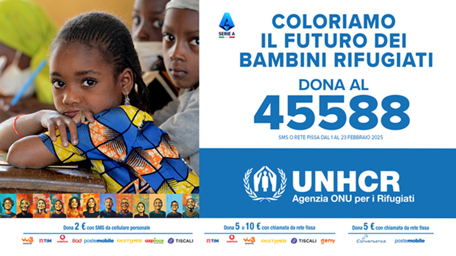 In occasione della 24a giornata di Serie A Enilive e in collaborazione con la Lega Serie A, viene promossa la Campagna “Coloriamo il futuro dei bambini rifugiati”, lanciata dall’Agenzia ONU per i Rifugiati – UNHCR che ha l’obiettivo di raccogliere fondi per garantire accesso all’istruzione primaria e portare speranza nella vita di tantissimi bambini e bambine in fuga da guerre e violenze.