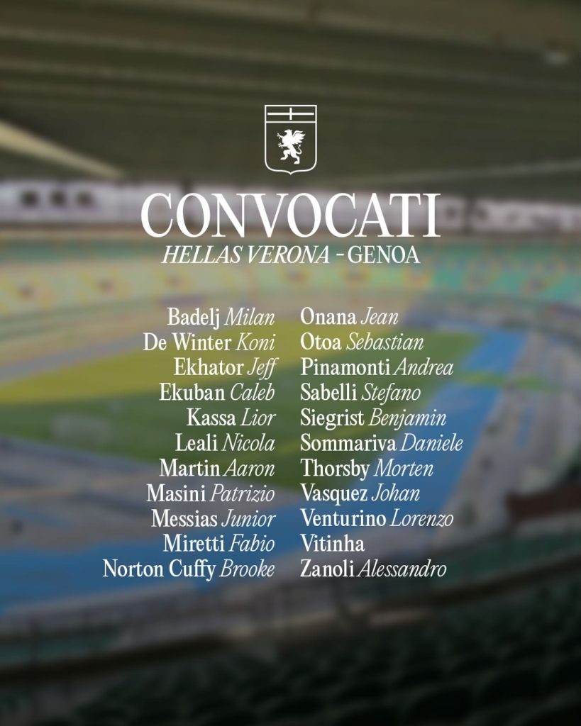 Sono 22 gli elementi a disposizione dello staff tecnico per la 32ma partita.