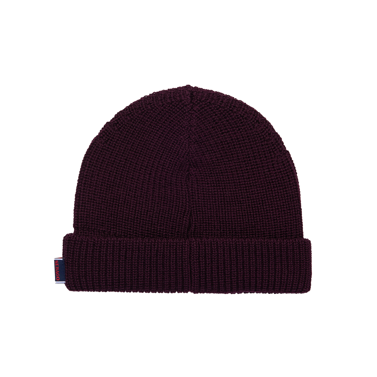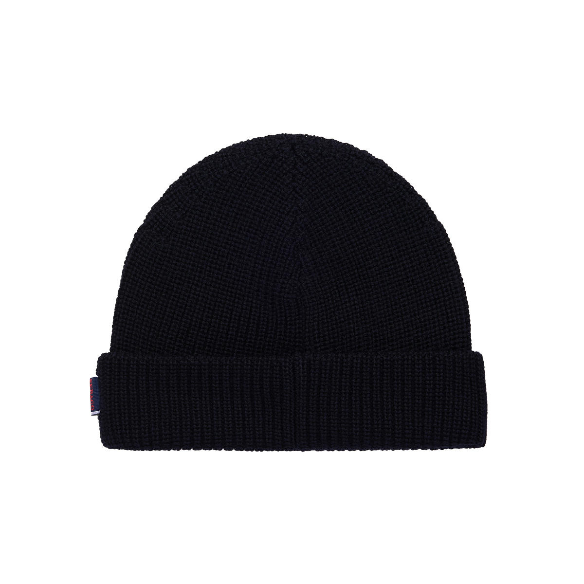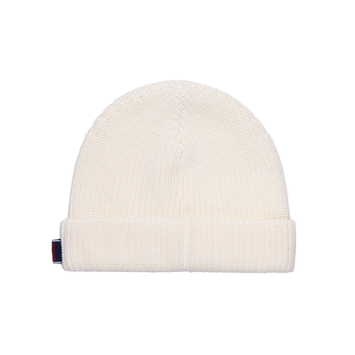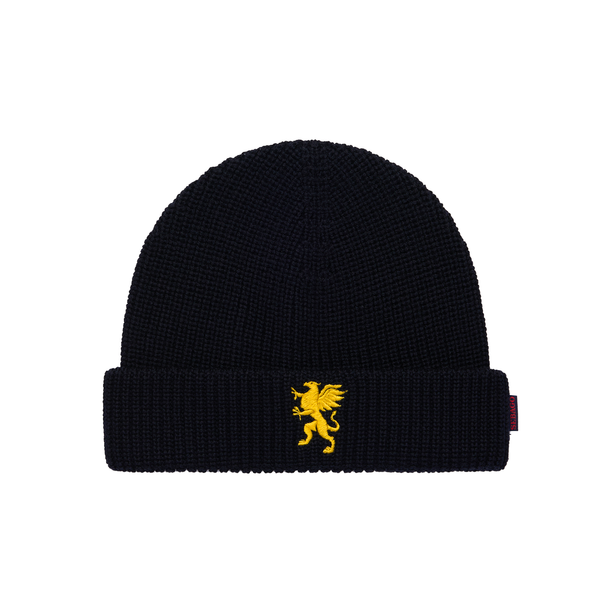 Beanie realizzato in Lana Merinos con maglia finezza 5 lavorata con punto nautico a costa inglese. Personalizzazione Grifone.