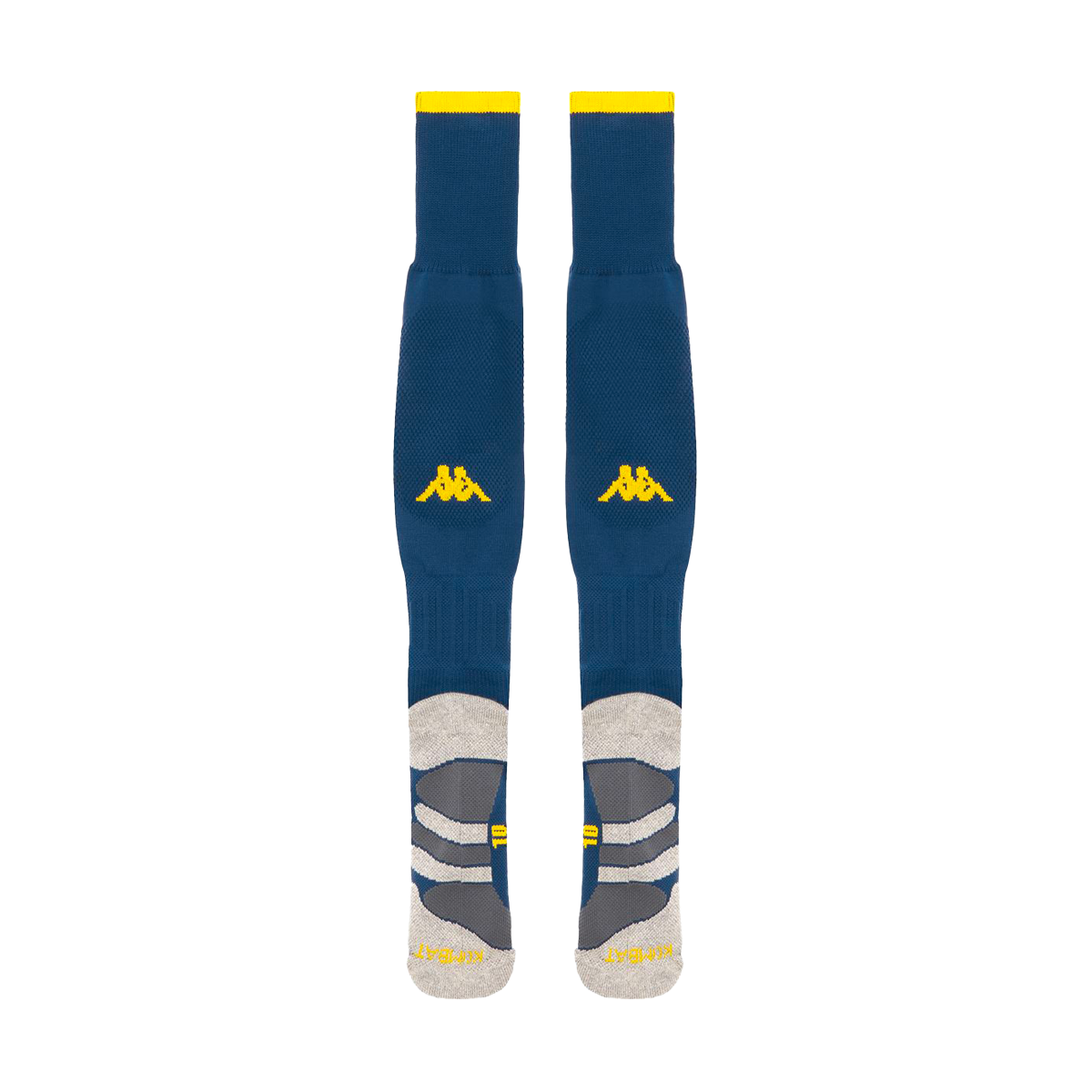 Piede con spugna anatomica per massima ammortizzazione, zona di aerazione sul collo del piede, polpaccio con lavorazione in jacquard e linea anatomica specifica per piede sinistro e destro.
