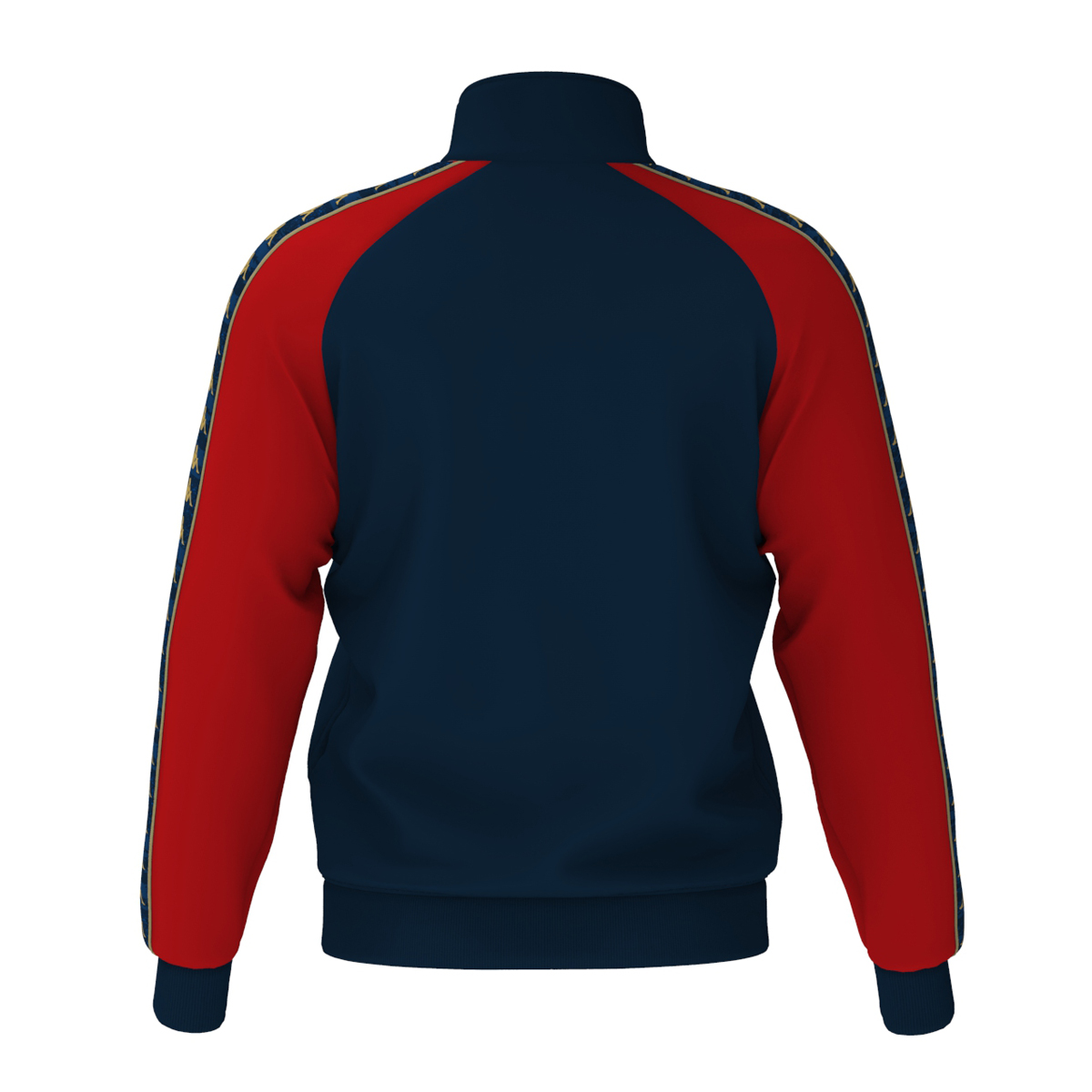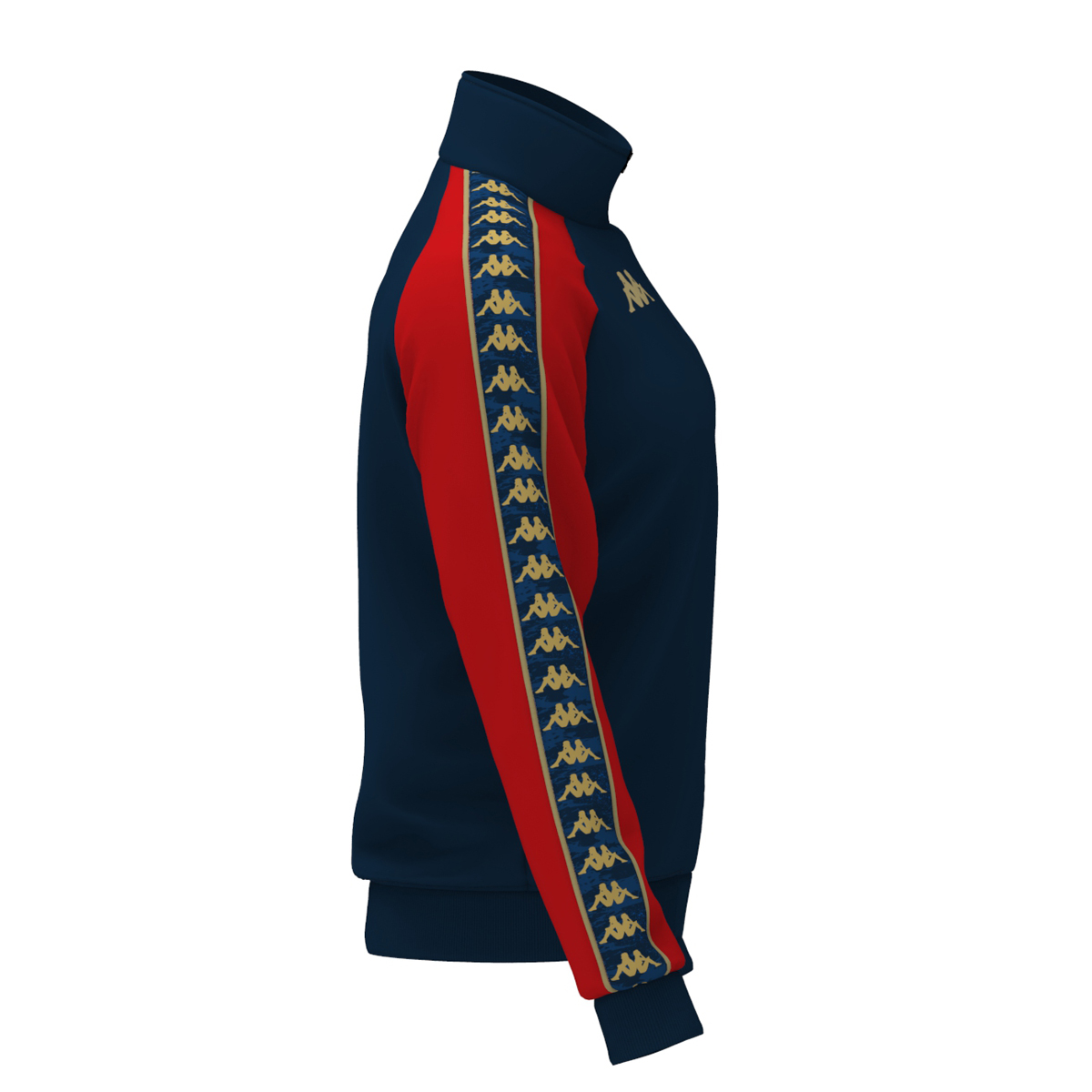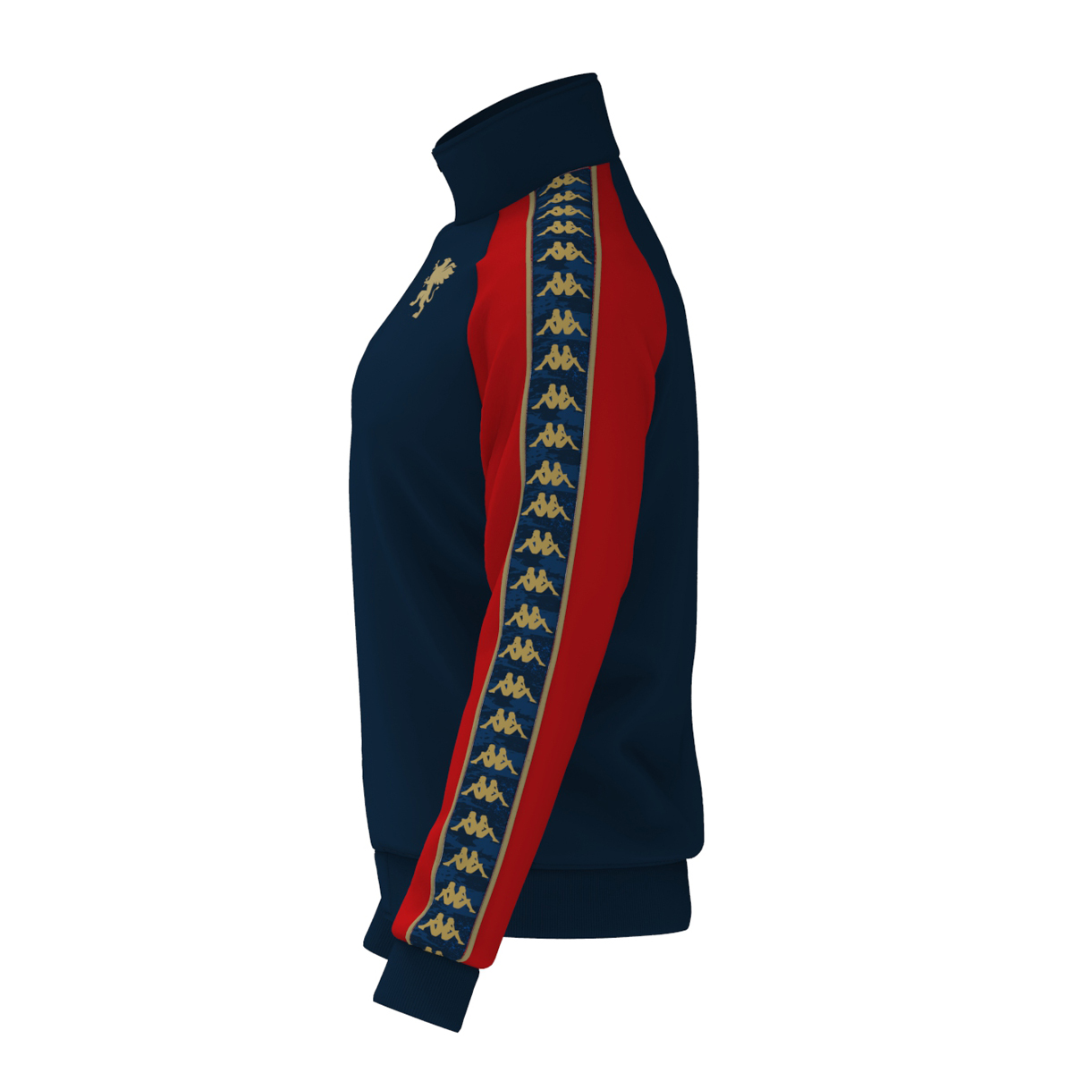 Banda con ripetizione di Omini e grafica con profili applicata sulle maniche, logo Omini in gabardina e logo Genoa CFC ricamati sul fronte.