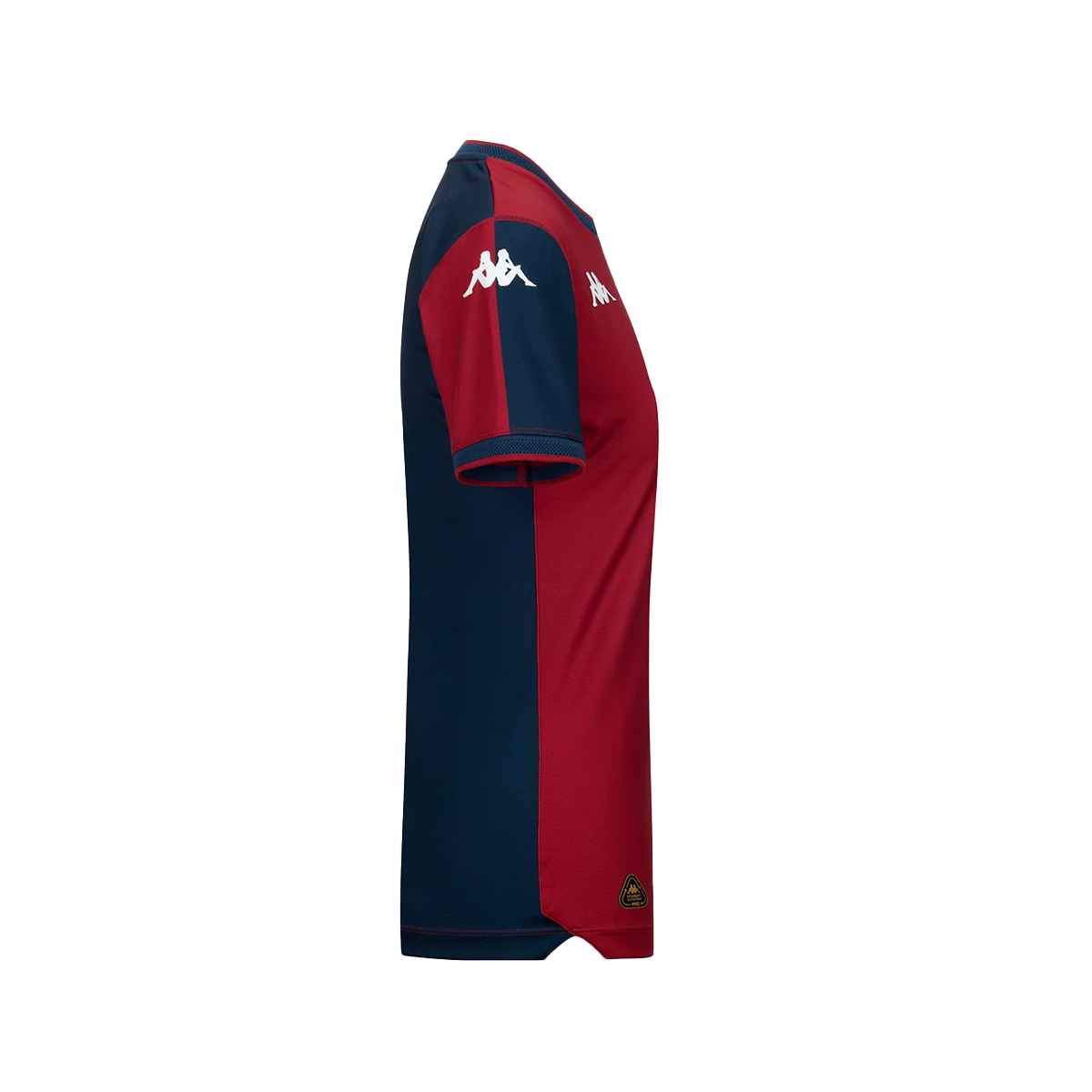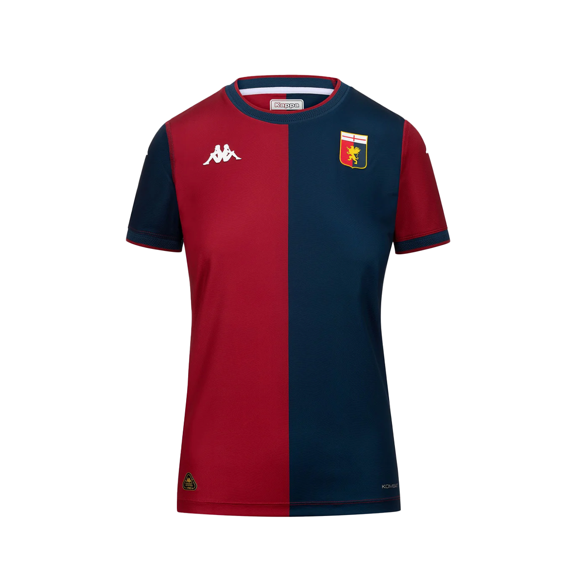 Logo Omini in stampa HD e logo Genoa in silicone applicati sul petto, logo Omini sulle maniche realizzati in transfer applicati a caldo, lettering del Team in transfer applicato a caldo sul retro.