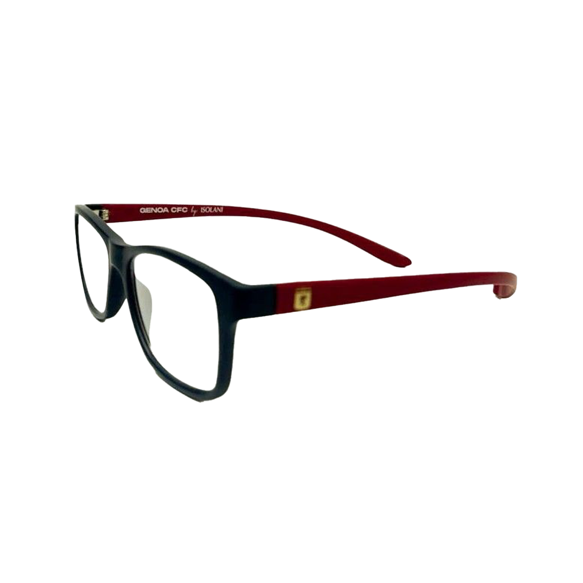 Occhiali Premontati da Lettura rossoblu, con dettaglio dello stemma sull’asta, disponibile con potere da +1.00 a +3.50.