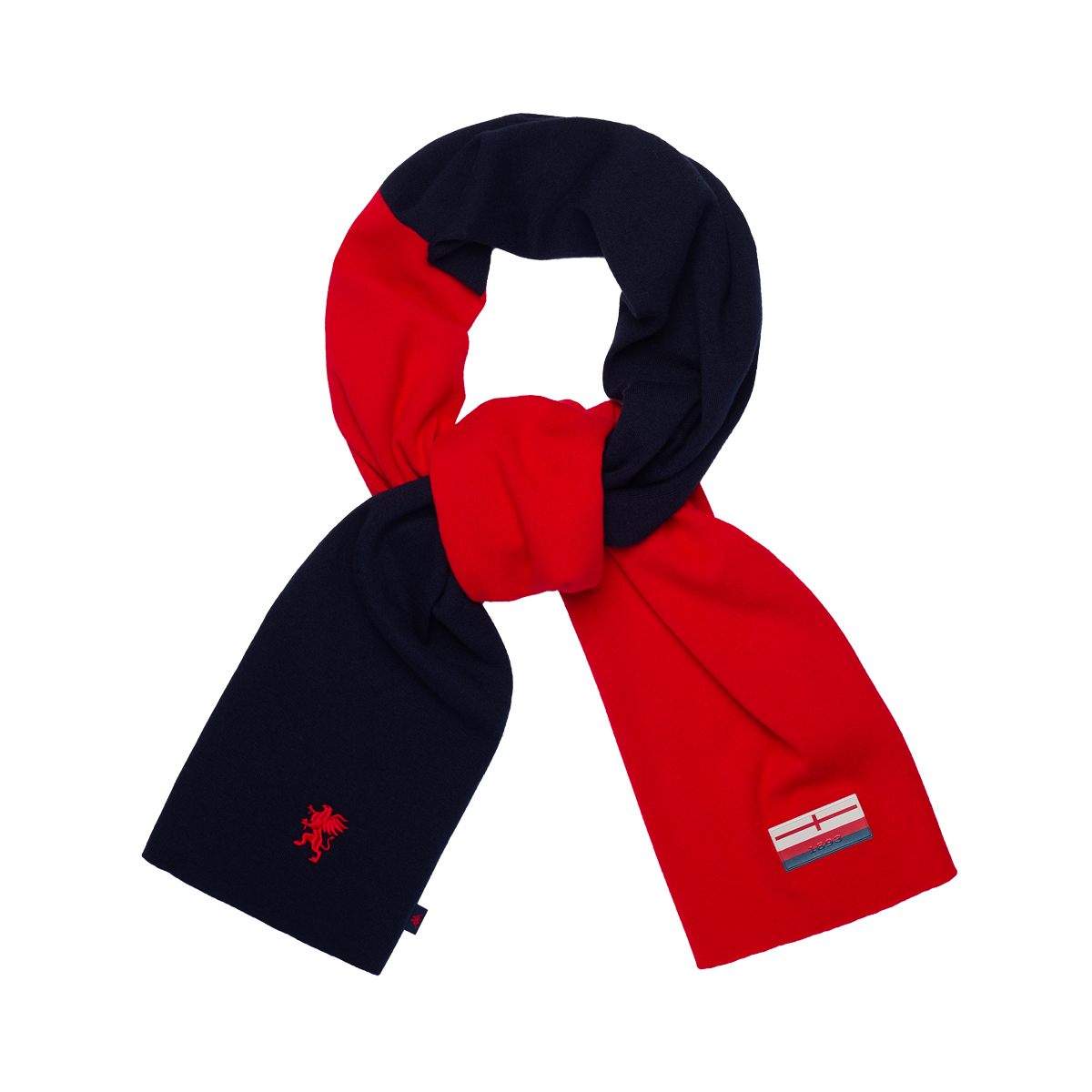 Sciarpa in cotone misto cachemire con pattern rigato. Bandierina logo e personalizzazione Genoa.