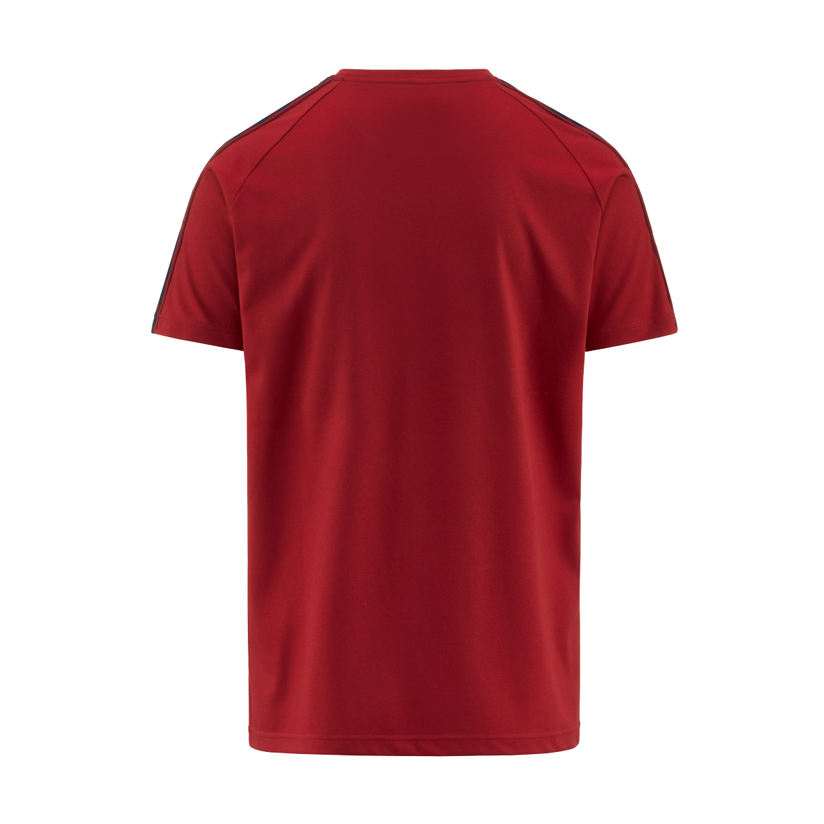 T-shirt manica corta da bambino. Giro manica e girocollo. Banda jacquard con ripetizione di omini applicata sulle maniche, logo Omini e logo Team in gabardina applicati sul fronte.