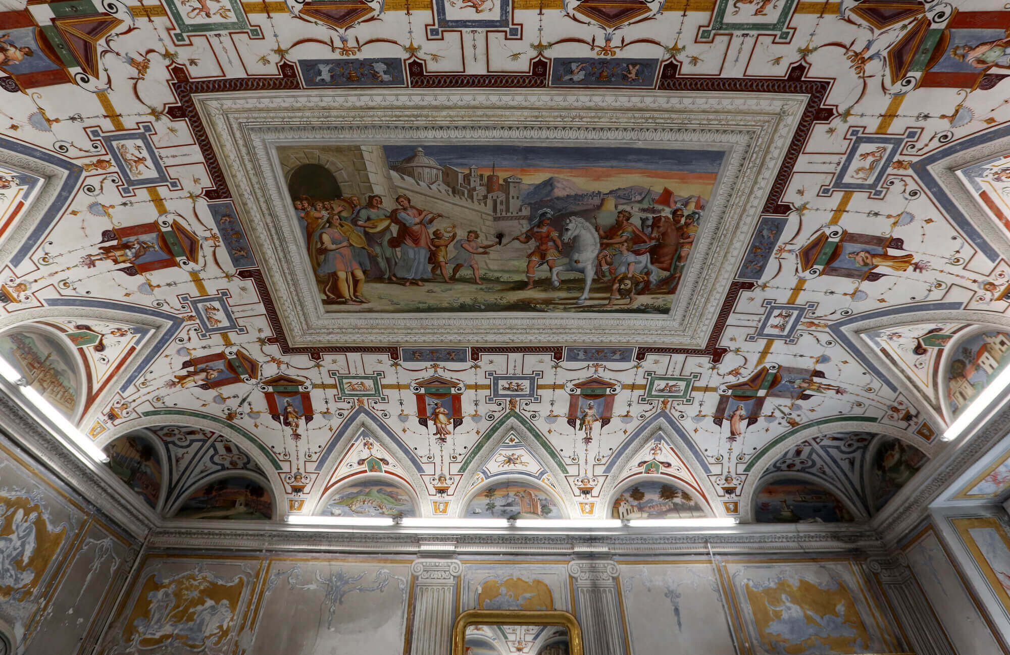 Spiccano le decorazioni dei saloni, tra cui gli affreschi del pittore Bernardo Castello.